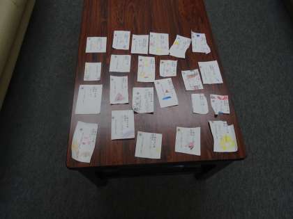 1年生は、1学期ひらがなの練習を一生懸命にしていました。名刺カードには、一人一人真剣に書いたであろう名前が力強く書かれていました。