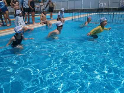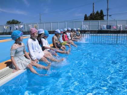 今年度初めてのプール学習を行いました。「冷たくて気持ちいい!」など、プール学習ができることに喜びを感じていました。