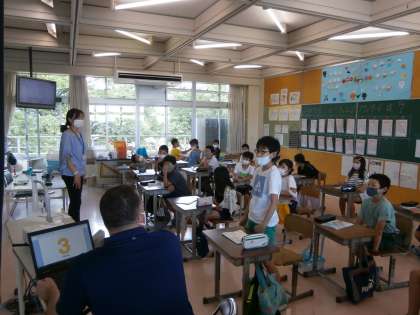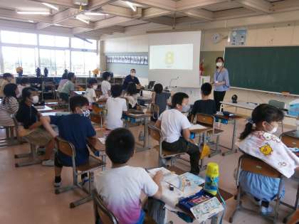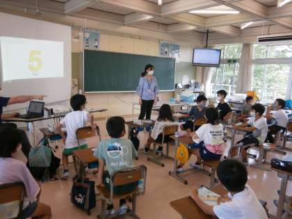 英語で朝起きる時刻や夜寝る時刻を尋ねる練習をしました。