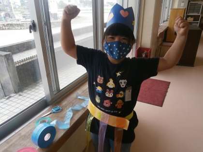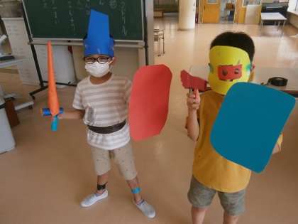図画工作科「わっかでへんしん」の学習を行いました。紙をわっかにして、腕輪や王冠など自分の変身したいものに必要な物を夢中でつくっていました。