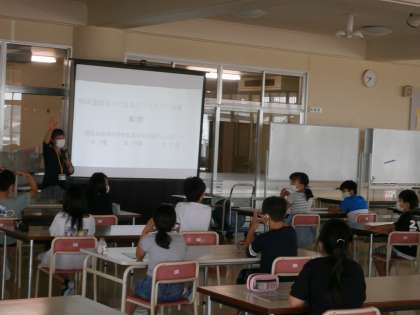 総合的な学習の時間に環境チャレンジ10についてのお話を聞きました。
