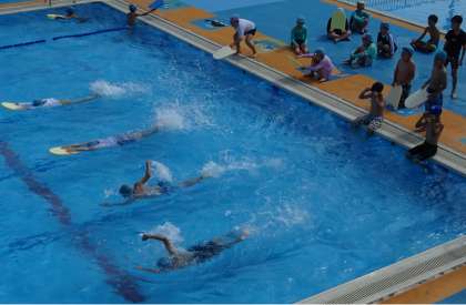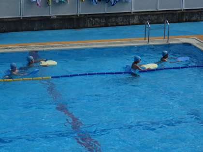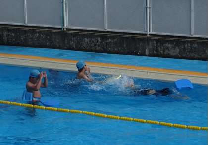 小学校の間に25mを泳ぎ切る力をつけるために練習しています。