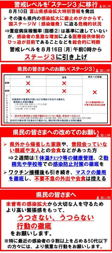 新型コロナ警戒レベルが「ステージ3」に上がります