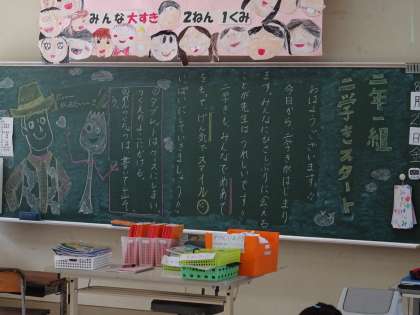 教室では担任先生のすてきなメッセージが迎えてくれました。