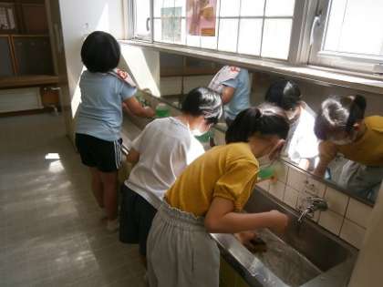 夏休みにたまったよごれを一生懸命掃除していました。