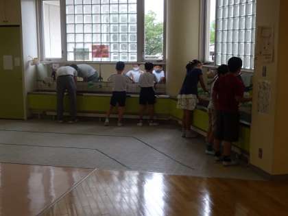 しっかりと手を洗い、机の上をきれいにして静かに待ちます。