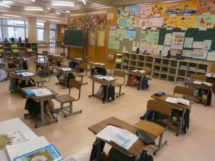 今日は防災の日。シェイクアウト訓練がありました。みんな自分の命を守るため、真剣に取り組んでいました。