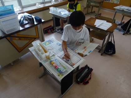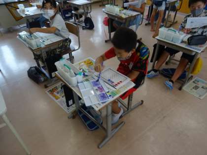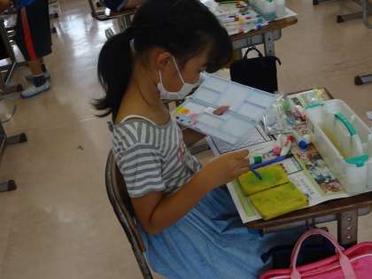 図工の時間、「色の不思議を見つけよう!」の学習に取り組みました。