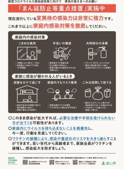 2学期が始まって2回目の週末です。富山県はコロナの警戒レベル「ステージ3」、富山市には「まん延防止等重点措置」が適用されています。