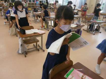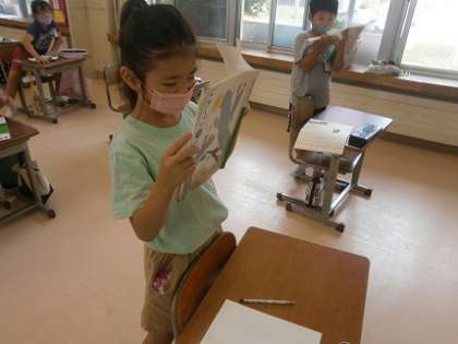 国語科で「雨のうた」の学習を行いました。雨が屋根や花に当たる様子を思い浮かべて、自分で読み方を工夫して音読することができました。