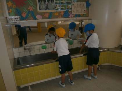 体育の後は、必ず手洗いです。しっかり洗っています。