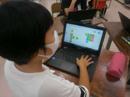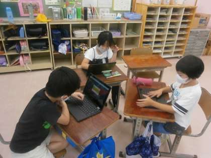クロームブックのジャムボードという機能を使って、自分の考えを付箋に書き、それをグループのみんなで共有しました。