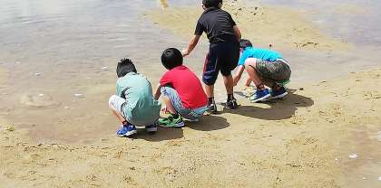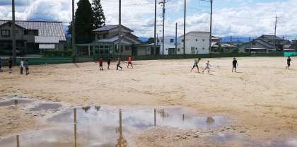 給食の後、子供たちが楽しみにしている「わくわくタイム」です。35分何して遊ぼう。元気な声がグラウンドに響きます。キックベースボール、虫とり、水溜まり遊び、わくわくが止まりません。