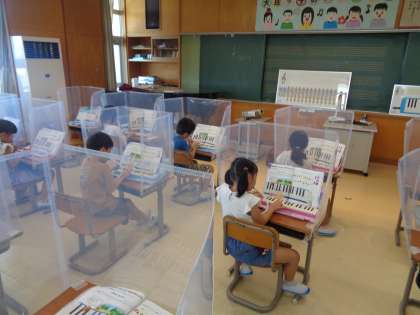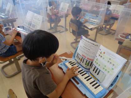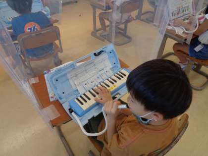 今日の音楽では、「どれみであいさつ」を演奏しました。指番号に気を付けてドレミの演奏をしました。なかなか慣れない指の動きでしたが一生懸命練習していました。