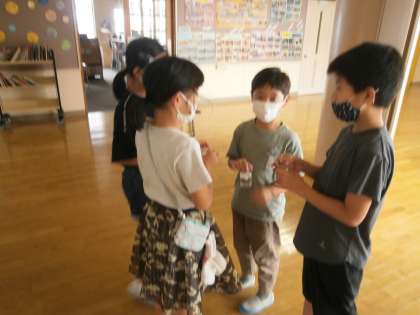 どんな場所でも、空気中に水蒸気があるのか、氷水を使って確かめました。