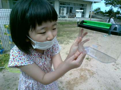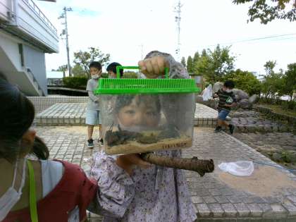 生活科「生きものとともだち」の学習で、なかよし広場にいる生き物探しをしました。石や葉っぱの裏などを見てみると、ダンゴムシやコオロギ、アリが隠れていました。虫かごの中を住みやすいようにするなど、工夫する姿も見られました。