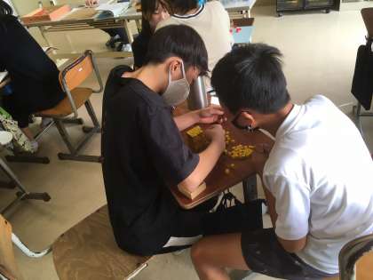 教科書やクロームブックを使った学習だけでなく、こうした教具を使った具体的な操作活動もとても大切です。