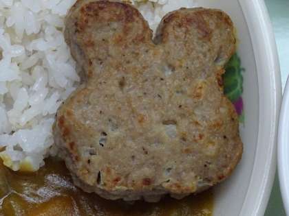 カレーライスの上にかわいらしいウサギのハンバーグがちょこんと乗っています。