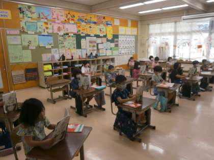 国語の時間は、姿勢正しく、あおむしの気持ちになって音読しました。