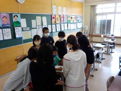 学習発表会に向けて、学年で話し合っている様子です。大庄小学校での思い出を発表するために、どんなことが思い出に残っているのか、出し合いました。大きな行事から、日常の些細な出来事まで、6年間の思い出を振り返っていた子供たちです。