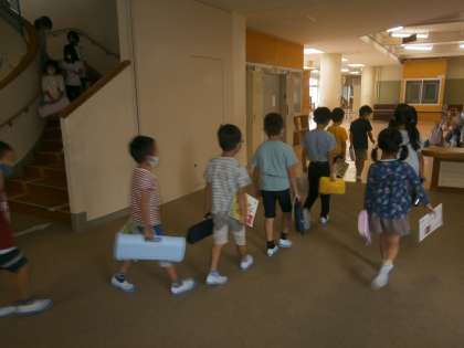 音楽が終わって教室へ帰ります。しっかりと2列に並んで、静かに廊下を歩きます。とても上手になりました!