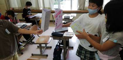 道徳科では、自分の思いをもって考えたり、振り返ったりする場を大切にしています。子供たちは、同じ意見、違う考え、似た考えなど、自分の意思表示を互いに伝え合うグッズを製作していました。次の道徳の授業が楽しみです。