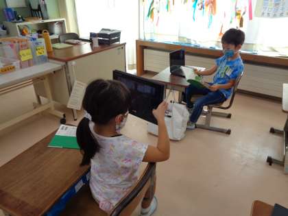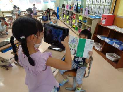 今日の国語では、、「やくそく」にでてきたあおむしたちが、いつけんかをやめたのか考えました。子供たちは、「海がきれいだったからわすれたんじゃないかな」と、あおむしの心の変化を想像していました。また、題名が「やくそく」になったのは、1年生のみんなにも大事なやくそくをしてほしいからではないかという意見がでました。子供たちなりに、一生懸命考えていました。最後はペアの人と、音読する姿を動画で撮り合いました。