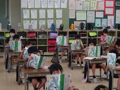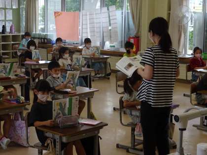 お話を読んでいるのですが、みんな教科書を持ち、よい姿勢で取り組んでいます。