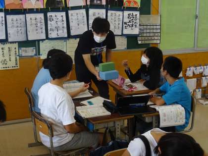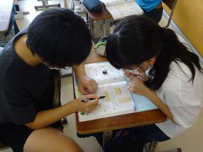 友達と話し合い、いろいろな角度から立体を観察し、解決方法を導き出していました。