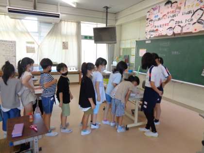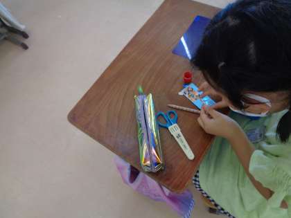 今週から、図書委員会によるしおり作りがはじまっています。飾りをつけたり絵を描いたりしてオリジナルのしおりを作っています。2年生や3年生が積極的に参加しています。この後も学年別に開催されます。