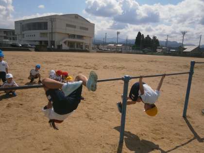 鉄棒 その2 「足抜き回り」「地球回り」(1年2組)