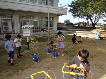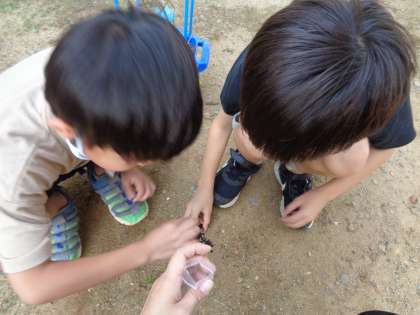 今日の生活では、あさがおの種をとりました。花が枯れた後は、茶色の袋がなっていることに気付いた子供たち。つぶすと中から種が出てくることを教えてもらい、みんなで一生懸命とりました。さて、この種はどうしようかな?