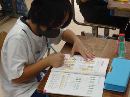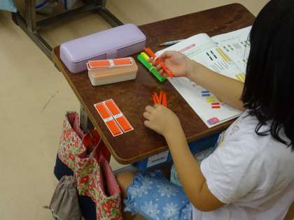 10のまとまりを上手に使い、いろいろな数をつくりました。