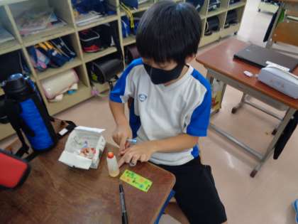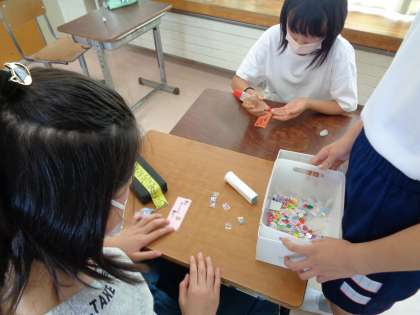 図書委員会の企画で、本のしおりづくりをしました。カラフルなかざりを付けたり、プレゼントするお母さんへのメッセージを書いたりするなど、すてきなしおりができました。