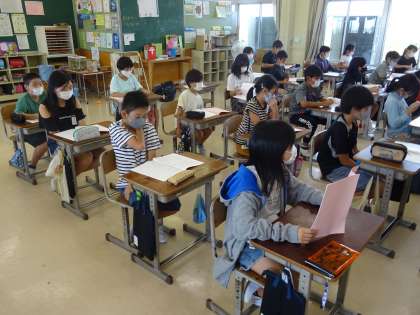 5年生は英語劇に挑戦します。みんな真剣にシナリオを読んでいます。
