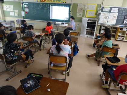 国語科の学習「ちいちゃんのかげおくり」の学習にあわせて、富山大空襲を題材にした「りんこちゃんの8月1日」という本を担任の先生に読んでもらいました。