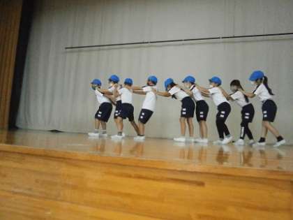 体育科「ゆうえんちへGO!」の発表を行いました。今日は、赤団・青団でした。赤団は自分の担当を責任もって行い、お化け屋敷ではゾンビがいたりぴょんぴょん跳ねるお化けがいたりしました。青団は団みんなでステージ全体を使い、バイキングでは一列に並び左右に揺れる様子を見事に表現しました。つぎの白団と黄団は、どんな遊園地になるか今からわくわくします。