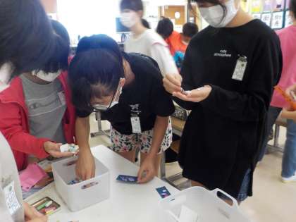 図書委員会企画の「しおり作り」に参加した子供たちです。オリジナルのしおりになるように、色やデザインを考えて作りました。仕上がりが楽しみですね。