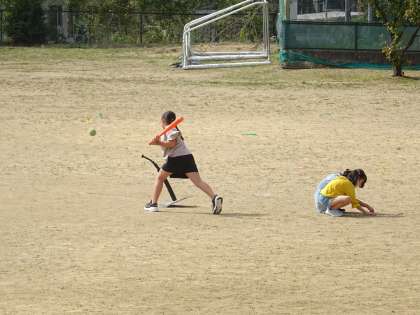 おもしろさに気付いた4年生は、昼休みもグラウンドでティーボールをして楽しんでいます。