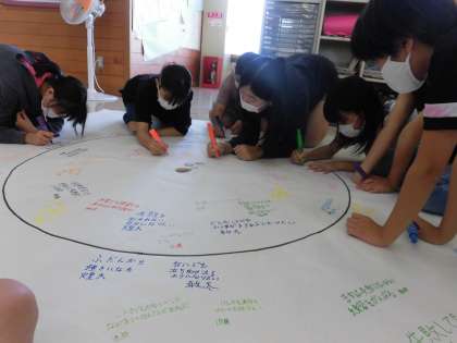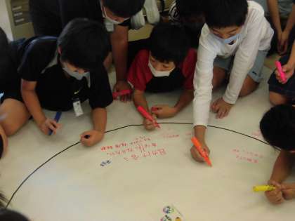 道徳の時間に「みんなの劇」という話を読んで考えたことを話し合いました。アドバイスし合い、高め合う登場人物たちの姿に感じることが多かった5年生でした。話合いの後には、「学習発表会を通してなりたいクラス(自分)の姿」「そのために大切にしたいこと」を大きな模造紙にまとめました。本番まであと2週間!