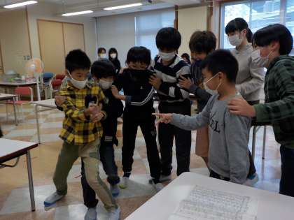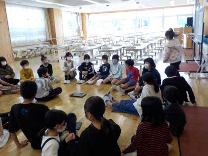 ファミリー班活動の様子です。6年生を中心に遊びを考えて活動しました。おにごっこやじゃんけん列車などで楽しみました。来月の活動も楽しみですね。