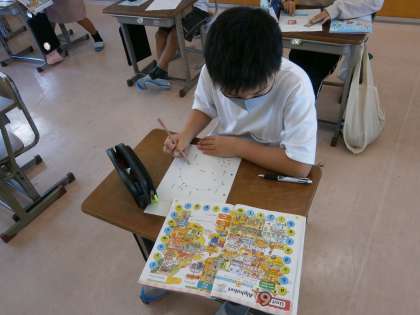 アルファベットじゃんけんリレーを行った後は、新しい表現の仕方を勉強しました。