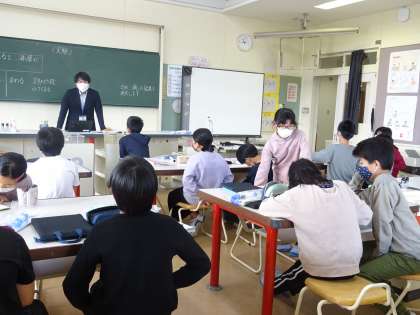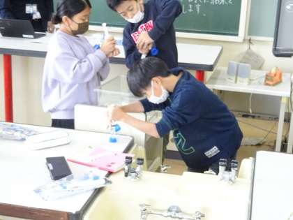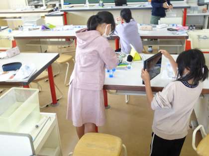 実験の様子をクロームブックで撮るなど、工夫して記録を残していました。