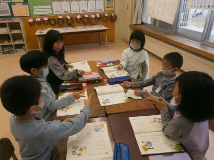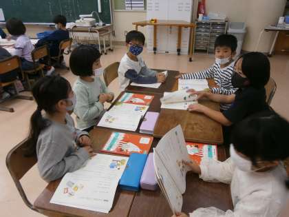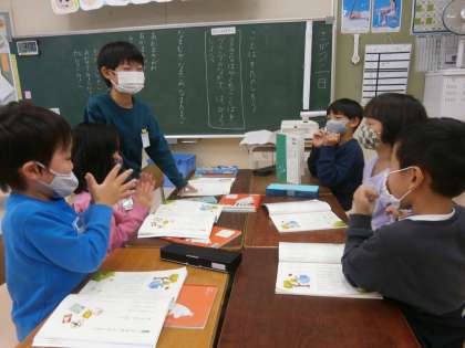 国語で早口言葉のグループ内発表をしました。教科書に出てくる早口言葉の中から、好きなものを選んで、グループのみんなに聞いてもらいます。順番を決めて発表が進むと、拍手も起こっていました。