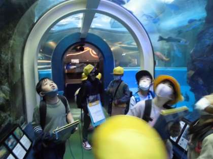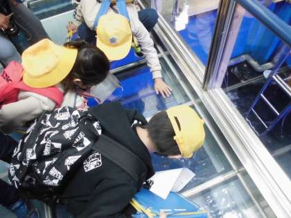 水族館の中にあったトンネルをくぐると、「海の中にいるみたい!」ととても興奮していました。バックヤードも見ることができるようになっていて、興味津々で見ていました。