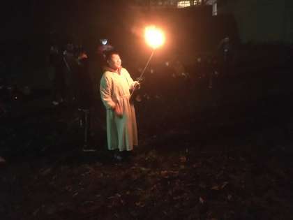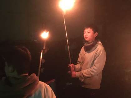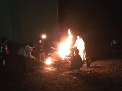 夜の活動はキャンプファイヤーです。 ゲームをして過ごしました。