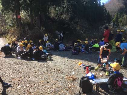 城前峠まで来ました。 みんな元気に歩きました。 これからお弁当を食べて自然の家に帰ります。