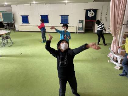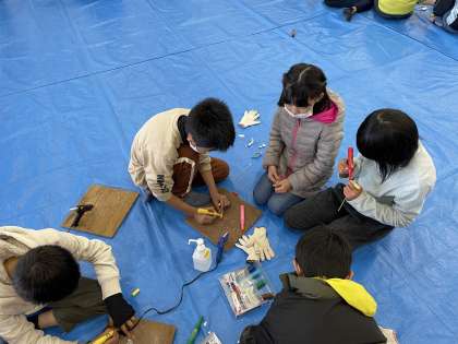 完成した竹とんぼをとばしました。 とばすときにもコツがあるようです。