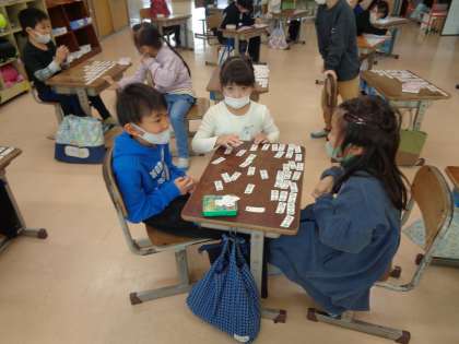 算数では、計算カードを同じ答え同士で並べ替えました。困っている友達を助ける優しい子供の姿が見られました。