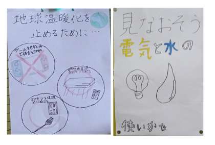 校内の掲示板には、環境に関するさまざまな呼びかけポスターを掲示してくれています。